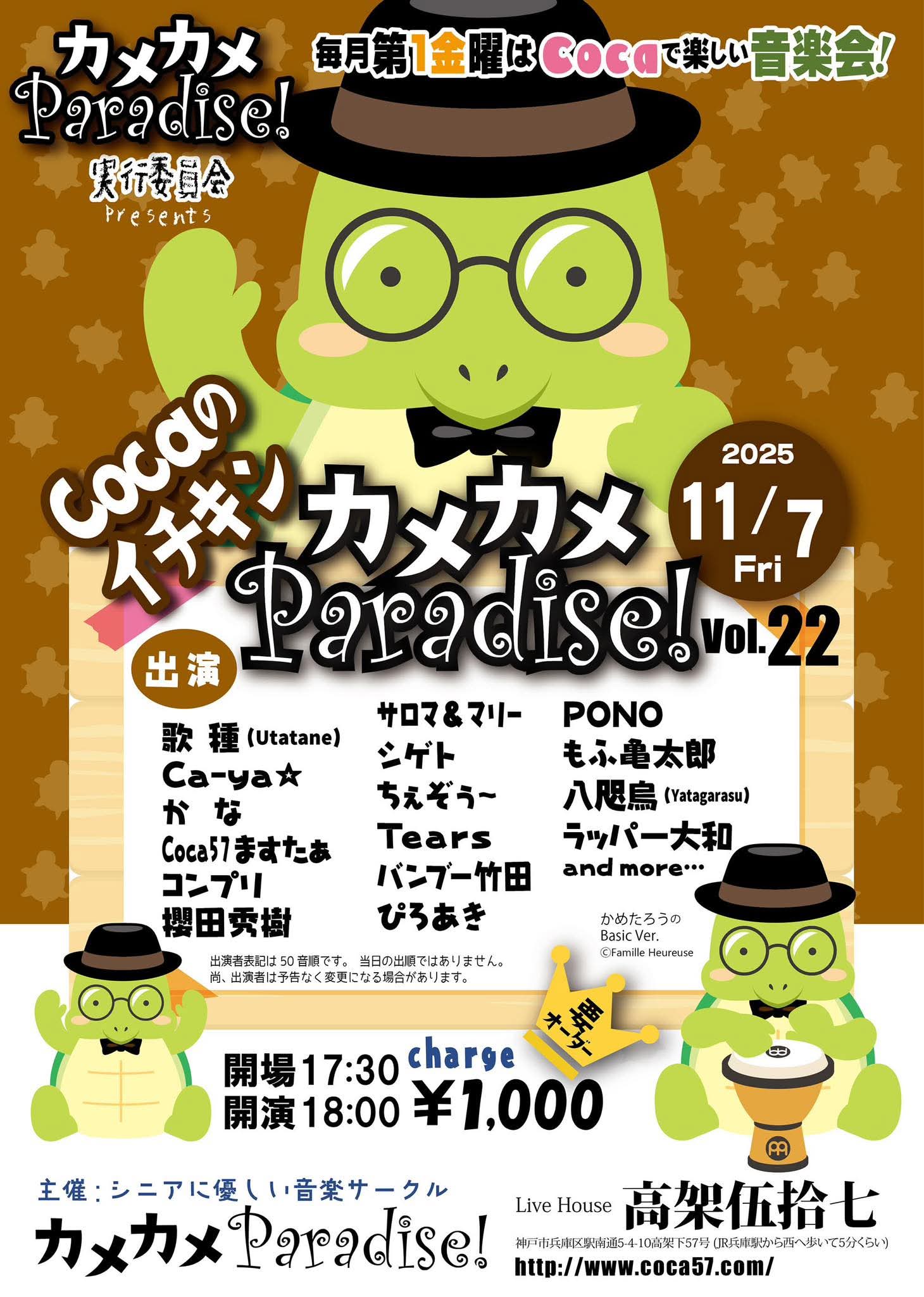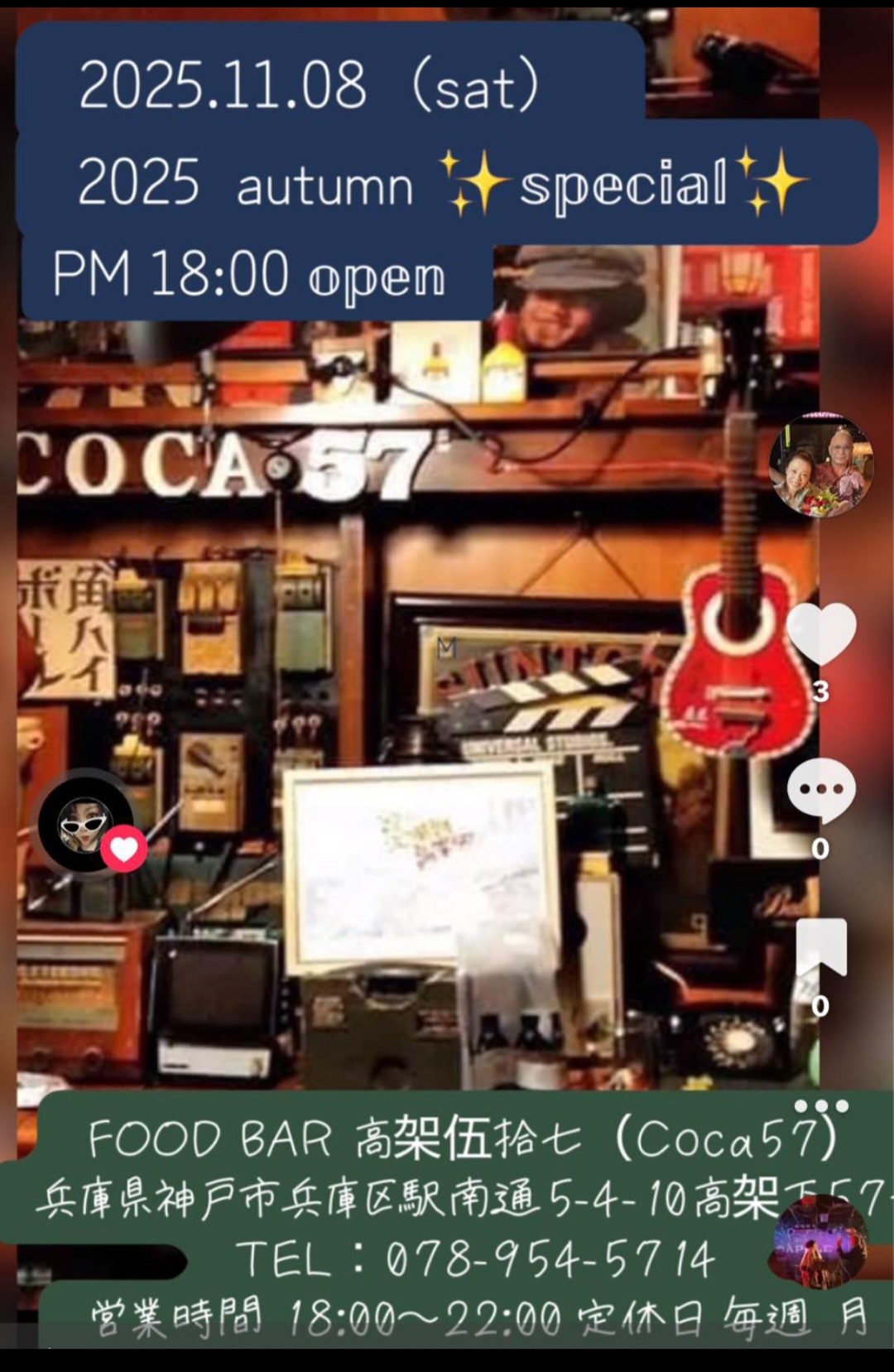 イベントスケジュール カテゴリ ライブ 定休日 臨時休業 貸切 通常営業 日程表 日程表 日 月 週 10月 – 11月 2025 10月 – 11月 2025 すべて閉じる すべて開く 10月 24 金 上海ブラシスcocaでどーだ18時30分開場 チケット 10月 24日 7:00 PM – 8:00 PM 10月 25 土 サトコリンの沖縄DEナイト18時オープン チケット 10月 25日 6:30 PM 10月 26 日 ミュージックバカボンド特別編 18時30分開場 チケット 10月 26日 7:00 PM 10月 29 水 水妖怪 (昼)12時から17時まで チケット 10月 29日 12:15 PM 11月 1 土 カホンヨーイチ with YeIIow音あそびオープンマイク🎤16時30分開場 チケット 11月 1日 5:00 PM 11月 2 日 「音 Katz 祭」毎月第一日曜日の13時30分開場 チケット 11月 2日 2:00 PM 11月 3 月 MICKEYS’BND40TH AnniversaryLIVE 17時30分開場 チケット 11月 3日 6:00 PM 11月 5 水 水妖怪 (昼)12時から17時まで チケット 11月 5日 12:15 PM 11月 7 金 「もふ亀とピロとバンブー」の cocaで楽しく音楽会 18時開場18時30分開演charge¥1000 オープンマイク&ゲスト チケット 11月 7日 6:30 PM 11月 8 土 AmedamaAutumnSPECIALLIVE18時開場 チケット 11月 8日 6:30 PM 10月 – 11月 2025 10月 – 11月 2025 フィルタされたカレンダーに登録 Timelyカレンダーに追加 Googleに追加 Outlookに追加 Appleカレンダーに追加 その他のカレンダーに追加 Export to XML