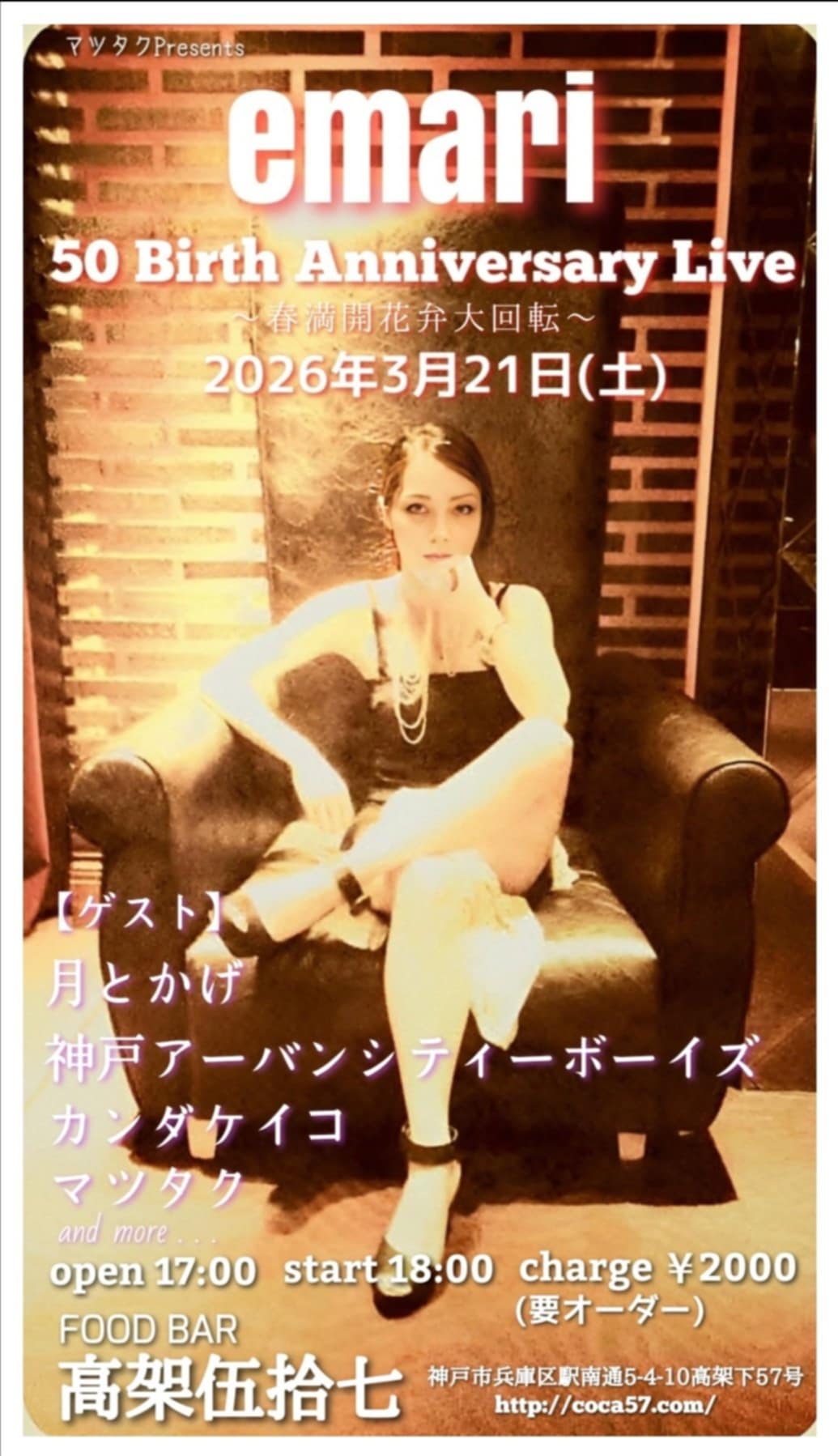 emari50th birthAnniversaryLIVE!…17時開場 2025年4月24日 by Master·emari50th birthAnniversaryLIVE!…17時開場 はコメントを受け付けていません Calendar カレンダーに追加 Timelyカレンダーに追加 Googleに追加 Outlookに追加 Appleカレンダーに追加 その他のカレンダーに追加 Export to XML いつ: 2026年3月21日 6:00 PM 2026-03-21T18:00:00+09:00 2026-03-21T18:15:00+09:00 料金: Charge飲食別¥2000要オーダー ライブ